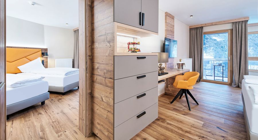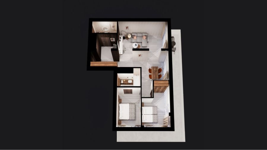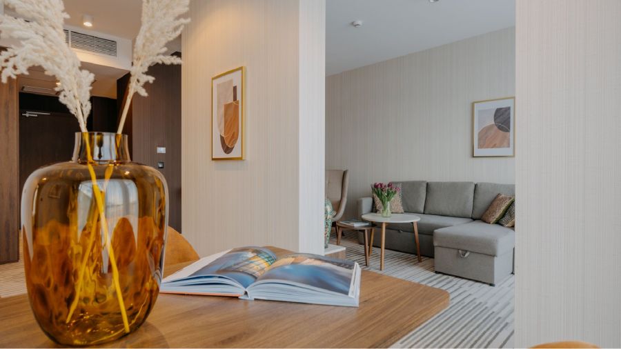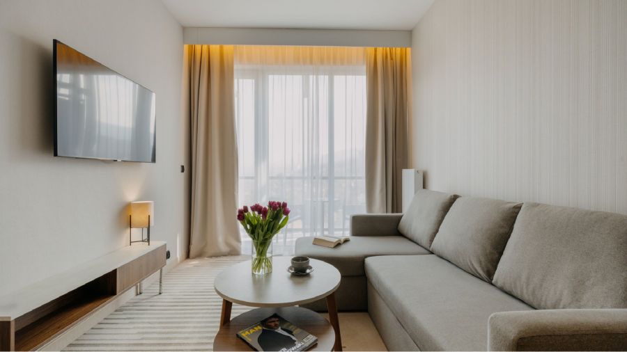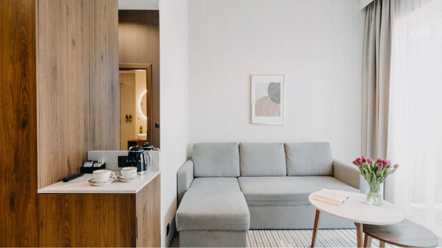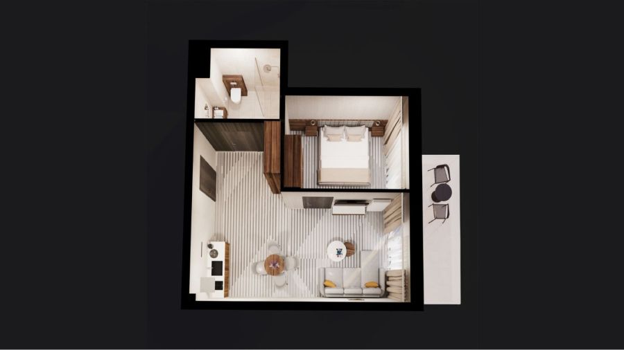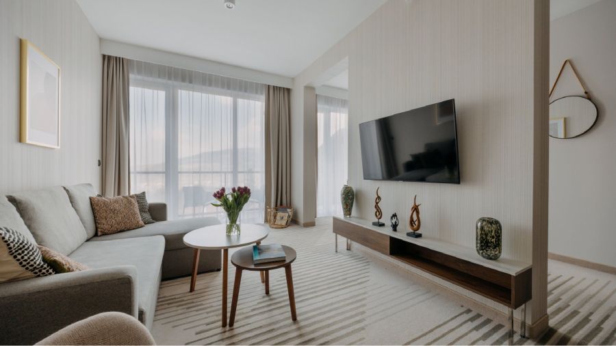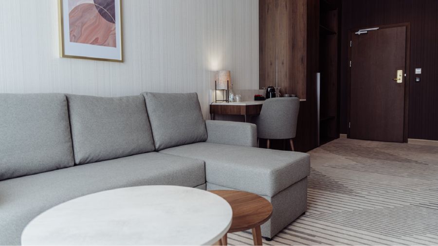 Dvoulůžkový pokoj DeLuxe Plus nabízí prostorné ubytování o velikosti 43 m² se dvěma místnostmi – ložnicí a obývacím pokojem. Pokoj je vybaven balkonem, klimatizací, TV, Wi-Fi, minibarem a trezorem. Nechybí koupelna se sprchou, fénem a kosmetikou, stejně jako župany, pantofle a čajový a kávový set.