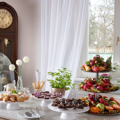 + 1 dalších fotekVelký prostorný pokoj s výhledem do parku a balkonem, na pokoji k dispozici župan, pantofle, mísa ovoce a láhev sektu.