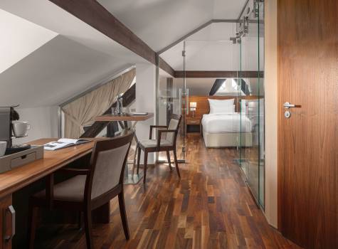 Krásný, moderně zařízený pokoj pro vaše pohodlí a příjemný pobyt s výhledem na park. Vybavení pokoje: Nespresso kávovary s kapslemi a čaj, župany, pantofle, WiFi, kosmetika Molton BrownVana nebo sprchový kout.