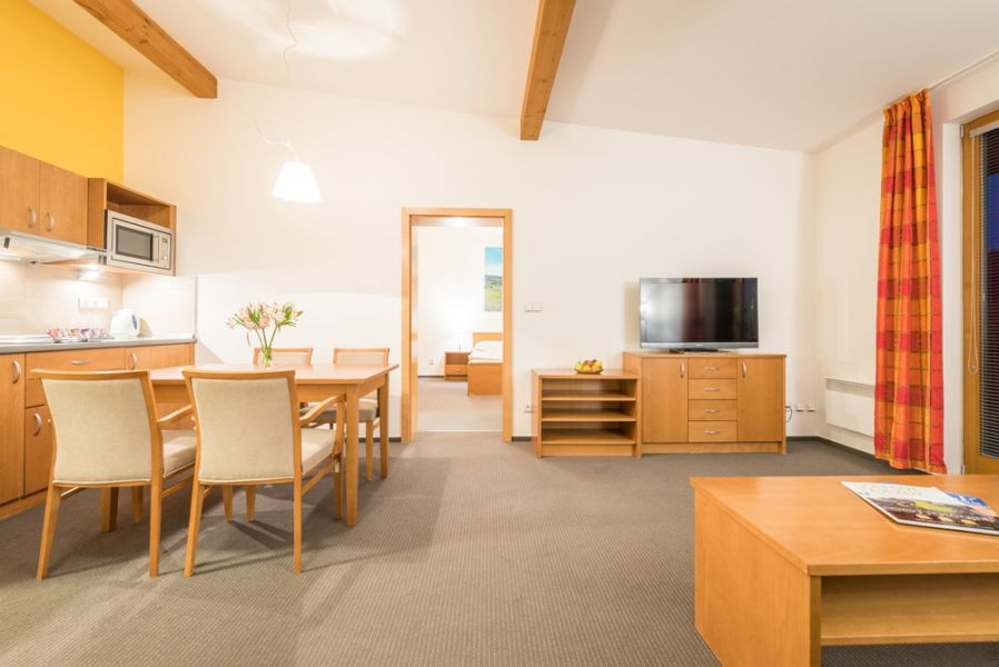 Prostorné, dvoulůžkové pokoje Standard jsou vybaveny vlastním sociálním zařízením a sprchovým koutem, minibarem, trezorem, LCD televizorem se satelitním příjmem, telefonem, budíkem, bezplatným Wi-Fi připojením, fénem, županem a přezůvkami. Za příplatek lze přidat jednu nebo dvě přistýlky. Dětské postýlky jsou k dispozici na vyžádání, zdarma a podléhají dostupnosti a potvrzení Vybavení pokoje: - vlastní sociální zařízení a sprchový kout nebo vana - vybavený kuchyňský kout - minibar - trezor - LCD televizor se satelitním příjmem - telefon, budík - Wi-fi připojení zdarma - fén - župan, přezůvky Check-in: od 14:00 hodin Check-out: do 12:00 hodin