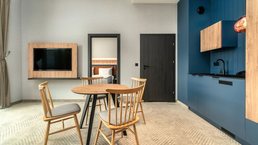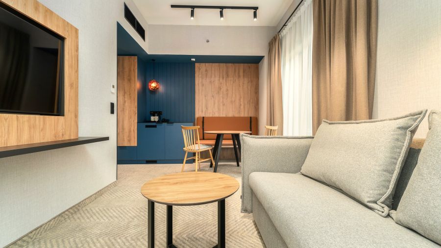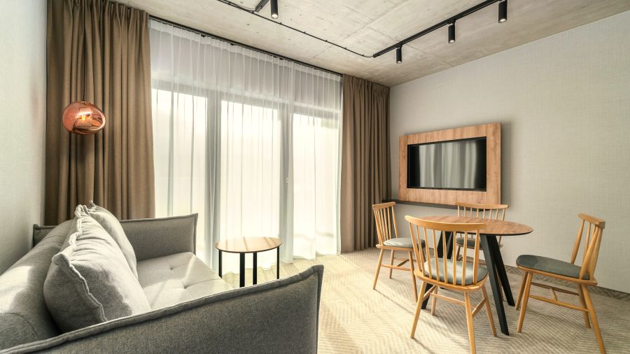 Prostorné apartmány hotelového standardu, ideální pro osoby, které ocení pohodlí vlastního separátního ložnice a obývacího pokoje, ve kterém je rozkládací pohovka. V této kategorii apartmánů jsou navíc k dispozici župany pro osoby nad 13 let. Apartmán je přizpůsoben pro maximálně 4 osoby. Klima v apartmánech.
