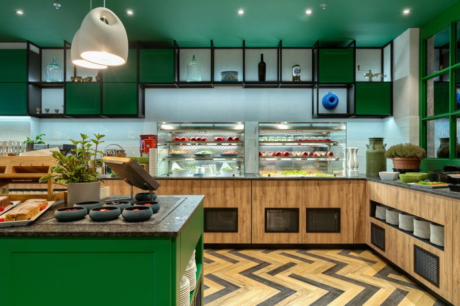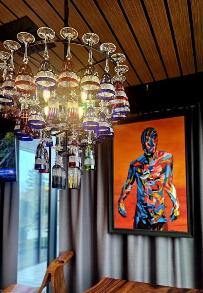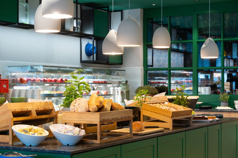 obvykle v restauraci nebo lobby baru