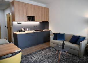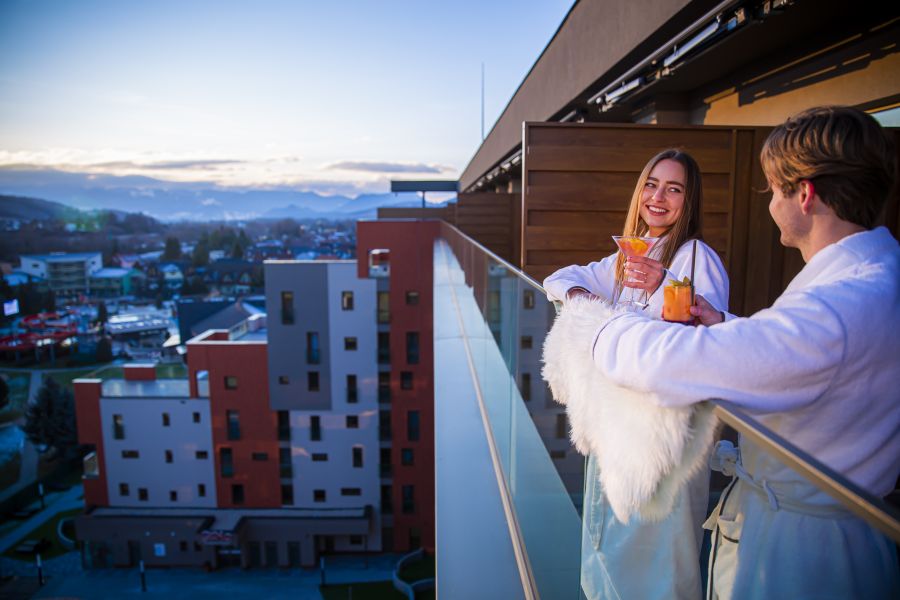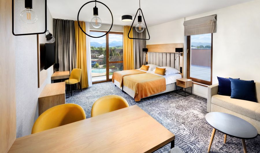 Studio s rozlohou obytné části od 37 m², většina studií je s lodžií, některé s terasou, s možností až 2 přistýlek na rozkládacím gauči (přistýlky jsou vhodné pro děti do 15 let). Pokoje jsou vybavené klimatizací, koupelnou se sprchovacím koutem, WC, kuchyňským koutem, LCD televizorem, trezorem, telefonem, čajovým setem, fénem na vlasy, plážovými ručníky do vodního parku, WiFi připojením, dětskou kosmetikou.