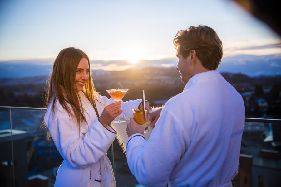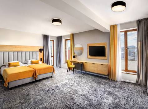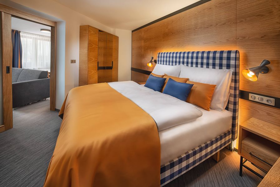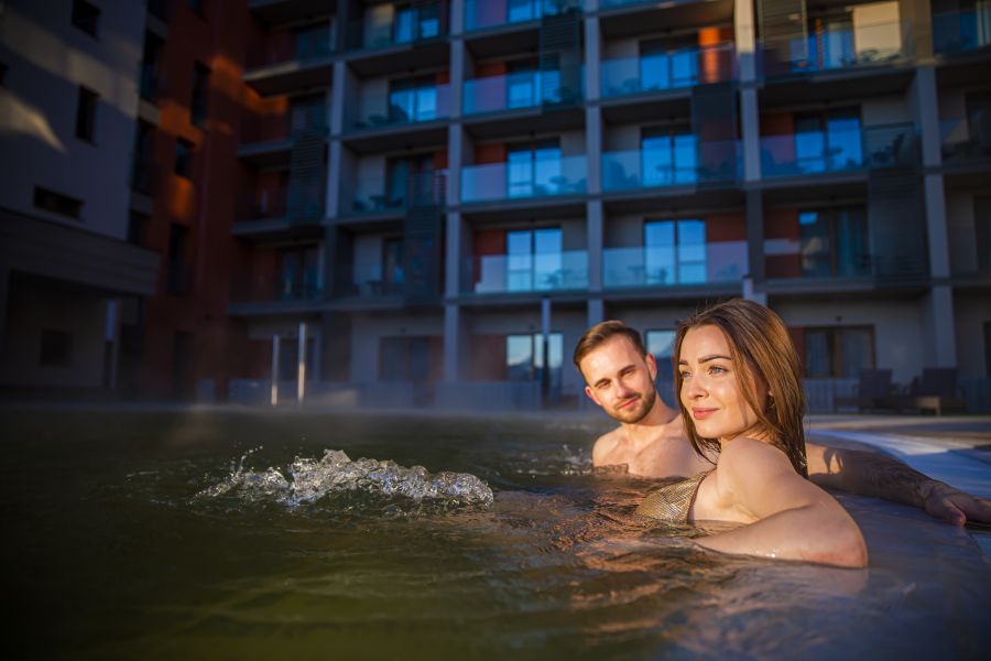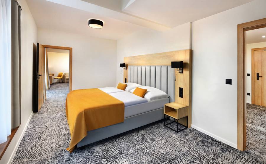 Apartmány 2-pokojové jsou s ložnicí (rozloha obytné části je 55 m2) a lodžií, s možností až 2 přistýlek na rozkládacím gauči (přistýlky jsou vhodné pro děti do 15 let). Pokoje jsou vybavené klimatizací, koupelnou se sprchovacím koutem, WC, kuchyňským koutem, LCD televizorem, trezorem, telefonem, čajovým setem, fénem na vlasy, plážovými ručníky do vodního parku, WiFi připojením, dětskou kosmetikou.