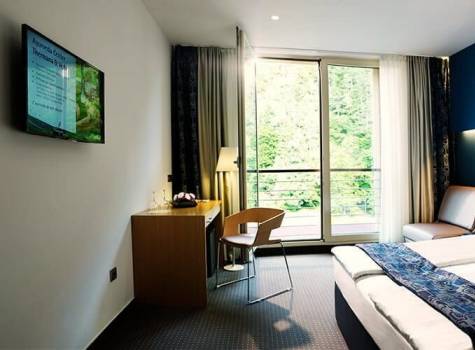 Dvoulůžkový pokoj bez balkonu s koupelnou se sprchou/vanou, WC, fénem a županem. K vybavení patří minibar, TV, telefon, Wifi připojení. Možnost přistýlky (rozkládací pohovka 140 x 190 cm).