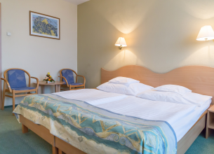 Dvoulůžkový pokoj obsazený 1 osobou je vybaven vlastní koupelnou s WC a vanou, TV, WiFi. Pokoje jsou klimatizované s balkonem.