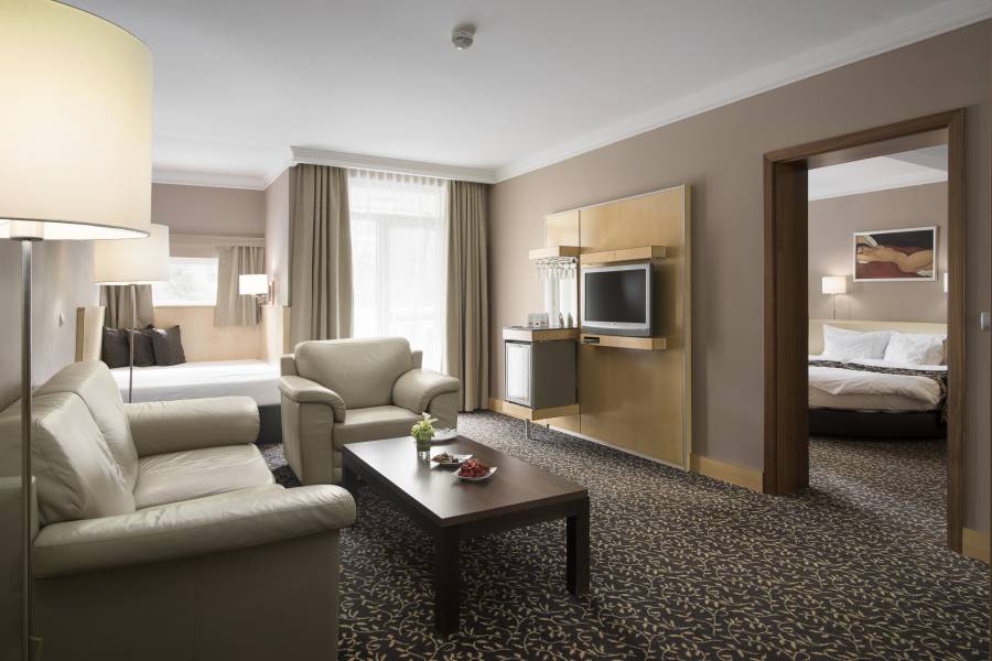 Pokoj PREMIUM GOLD: 31 - 35 m2, pohodlný designový nábytek, kulaté kruhové osvětlené zrcadlo, okno od podlahy ke stropu. Součástí pokoje je manželská postel (180×200 cm), minibar, smart LED TV, koupelna se sprchovým koutem, kosmetická sada, župan Spirit, plážová taška a měkké pantofle, trezor na pokoji, individuálně nastavitelná klimatizace, balkon. Pokoj PREMIUM PASSION: 31 - 35 m2, okno od stěny ke stěně, manželská postel na míru s posezením a rozkládací pohovkou po straně (vybavení se může v některých pokojích lišit), pohodlný designový nábytek. Součástí pokoje jsou dvě samostatné postele uspořádané jako manželská postel (180×200 cm), minibar, kávovar Nespresso s výběrem kávy, smart LED TV, koupelna se sprchovým koutem, kosmetická sada, župan Spirit, plážová taška a měkké pantofle, trezor na pokoji, individuálně nastavitelná klimatizace, balkon.