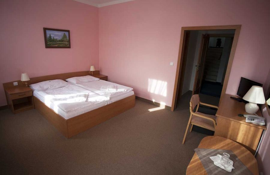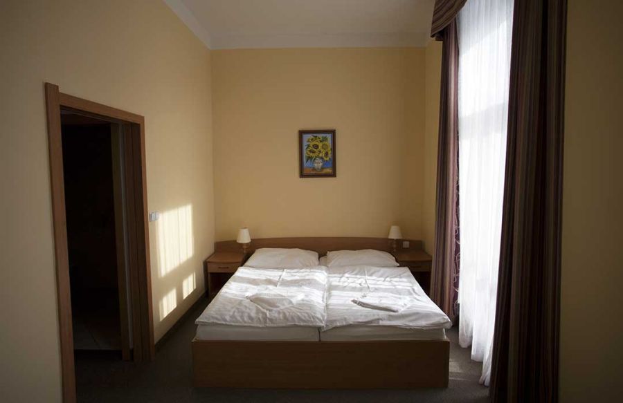 Dvoulůžkový pokoj s výhledem na náměstí. Koupelna se sprchou a WC, lednice, psací stůl, ručníky a osušky, telefon, trezor, TV s plochou obrazovkou a satelitním příjmem, fén, WI-FI.