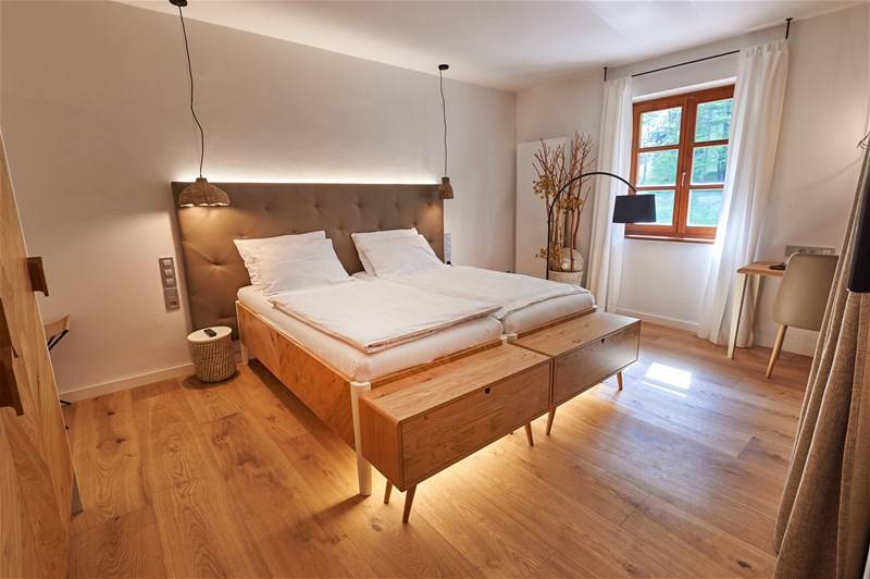 Prostorný pokoj o rozloze 20 m2 s balkonem a výhledem na vodopád. K vybavení patří telefon, kabelová TV, župan a pantofle po celou dobu pobytu, fén na vlasy, minibar, trezor, Wifi připojení. Koupelna se sprchou.