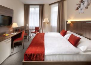 Dvoulůžkový pokoj s vlastním příslušenstvím umístěný v čelní nebo boční části. Součástí pokoje je TV, Wi-Fi, telefon, minibar, fén