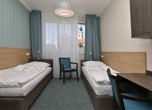 Pokoje se samostatnou koupelnou se sprchovým koutem a WC, dále pak lednice, fén, telefon, sat. TV včetně programů rádií, bezpečnostní schránky, WiFi, oddělená lůžka.