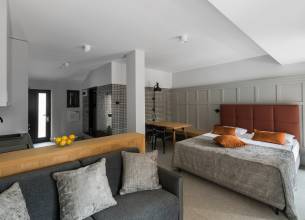 Apartmá s větší postelí (180 x 210 cm), vnitřní prosklenou terasou, pohovkou, vnitřní vířivkou, koupelnou se sprchovým koutem a bidetem (k dispozici vysoušeč vlasů). Apartmán s výhledem na moře má TV, telefon, minibar, bezdrátové připojení k internetu. Pro hosty apartmá je k dispozici také výtah. Pokoje jsou klimatizované.