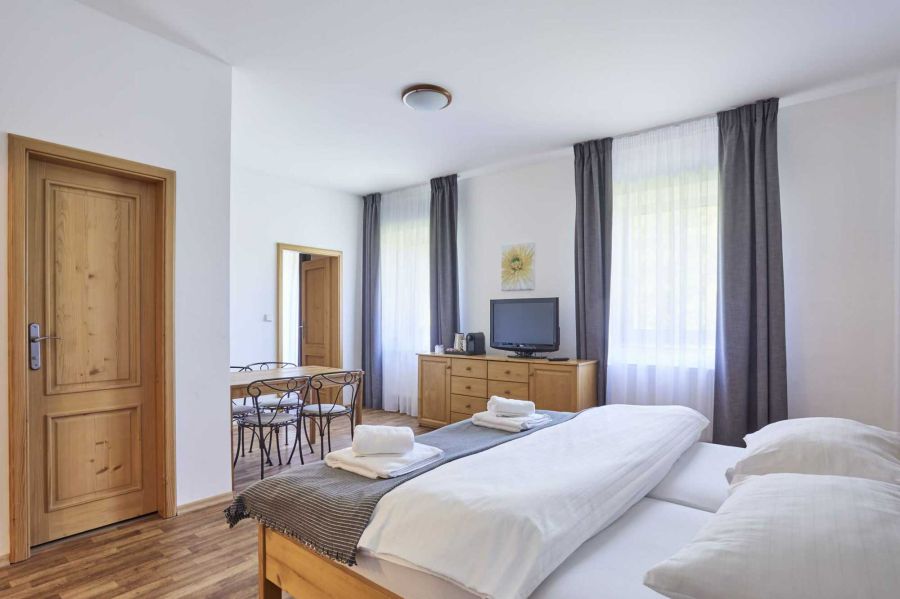 Čtyřlůžkový pokoj COMFORT je vhodný pro aktivní rodiny, které hledají ubytování za výhodnou cenu. Pokoje disponují dvěma místnostmi, samostatným sociálním zařízením, některé klubovými křesly, dvoulůžkem a dvěma jednolůžky. Jejich součástí je set na přípravu čaje a kávy, kávovar a mini lednice. Tyto pokoje nemají TV. Jsou situovány s výhledem do zeleně, na hřiště a příjezdovou cestu, která je současně cyklotrasou. Všechny pokoje jsou nekuřácké. Na těchto pokojích se lze za příplatek ubytovat s vychovaným domácím mazlíčkem.