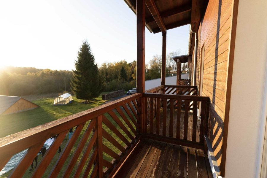Dvoulůžkové pokoje DELUXE s manželskou postelí, balkonem a přistýlkou jsou vybavené dřevěným masivním nábytkem. V pokojích najdete samostatné sociální zařízení a sedací soupravu s konferenčním stolkem. Rozkládací sedačka může sloužit jako přistýlka. Součástí vybavení je kávový/čajový set. Všechny pokoje jsou nekuřácké. V tomto pokoji nelze ubytovat domácí mazlíčky.