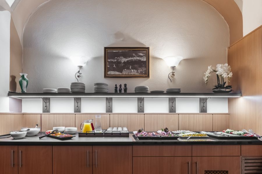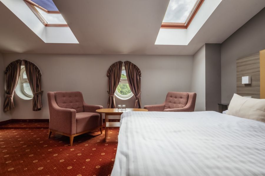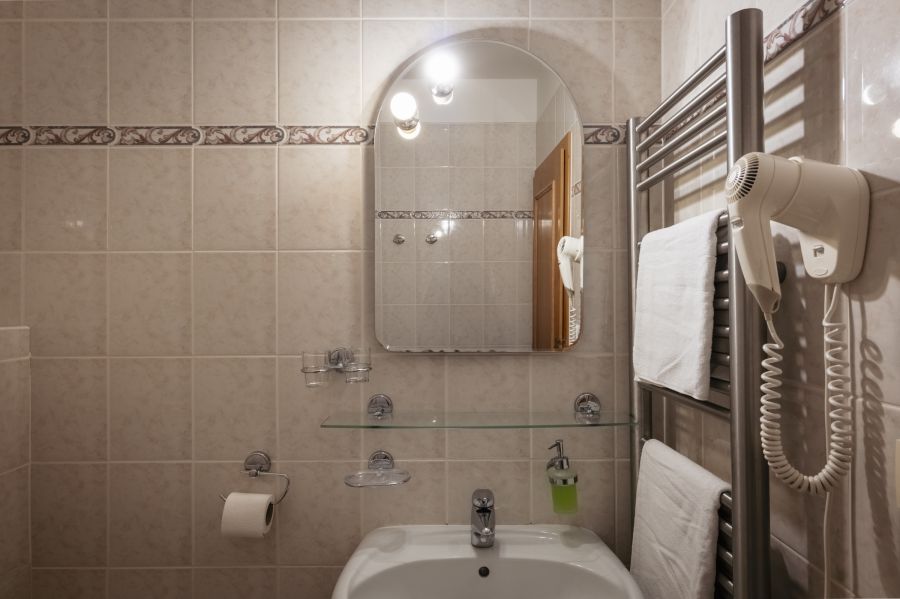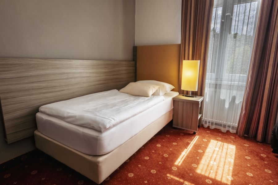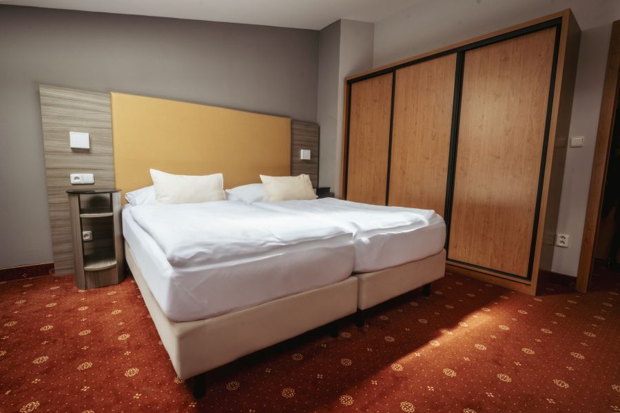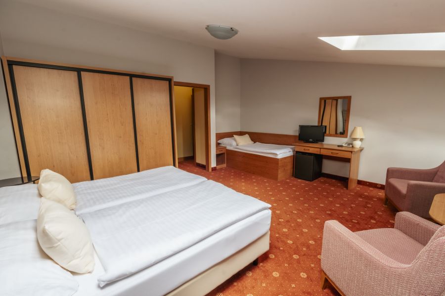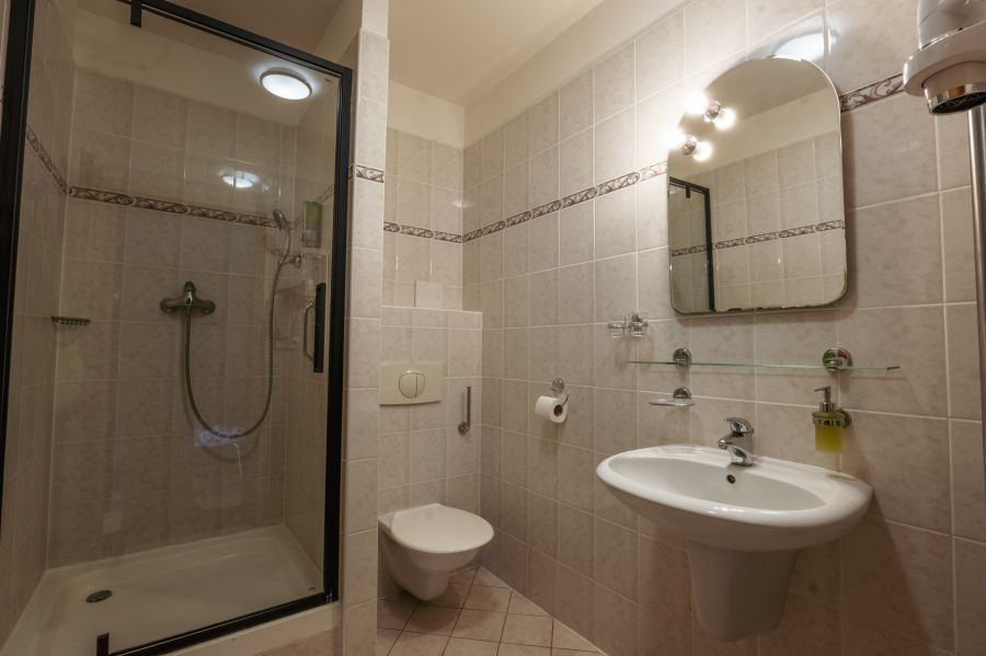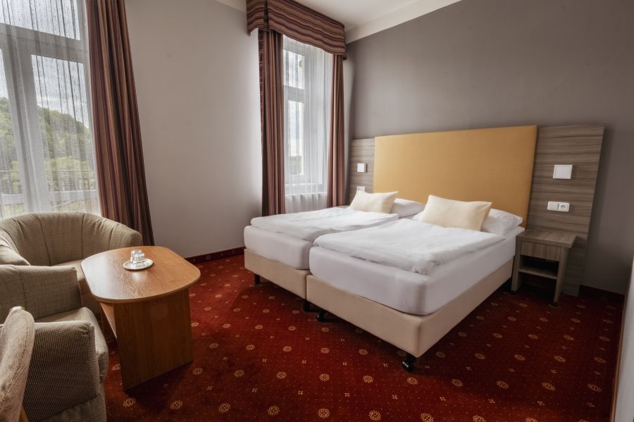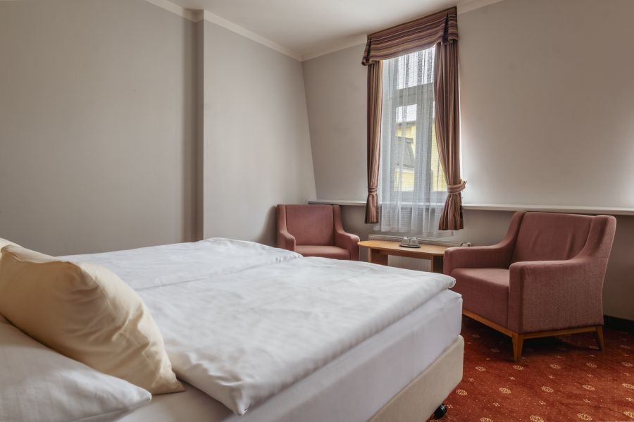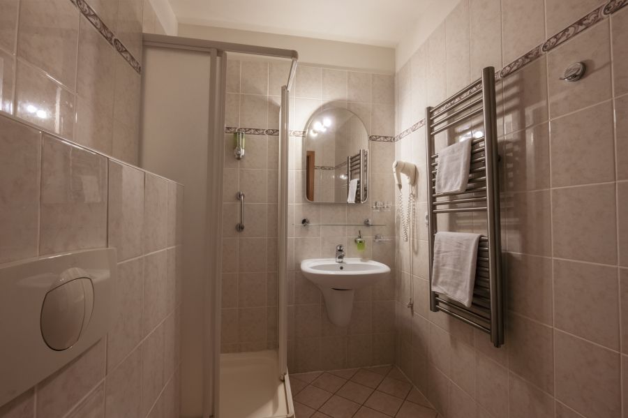 Jednolůžkový pokoj s výhledem na náměstí, koupelna se sprchou a WC, psací stůl, ručníky a osušky, telefon, lednice, župan, trezor, TV s plochou obrazovkou a satelitním příjmem, fén, WI-FI.