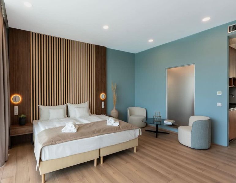 Tento pokoj nabízí komfort v jedninečném interiéru. Zahrnuje prostornou terasu, pohodlné postele se silnými zdravotním matracemi, individuálně nastavitelnou klimatizaci, trezor, inrenetové připojení, velkou LED televizi s plochou obrazovkou a aplikací Netflix (pro použití s vlastním Netflix účtem). K dispozici je kávovat Nespresso a originální italské kávové kapsle, čerstvá minerální voda po příjezdu a župany.