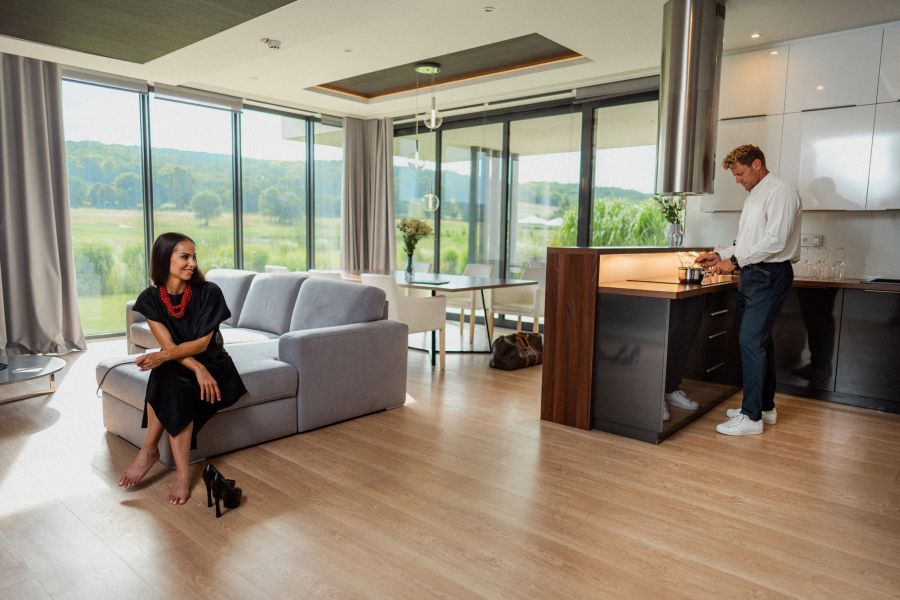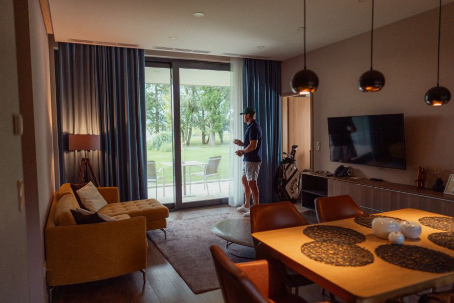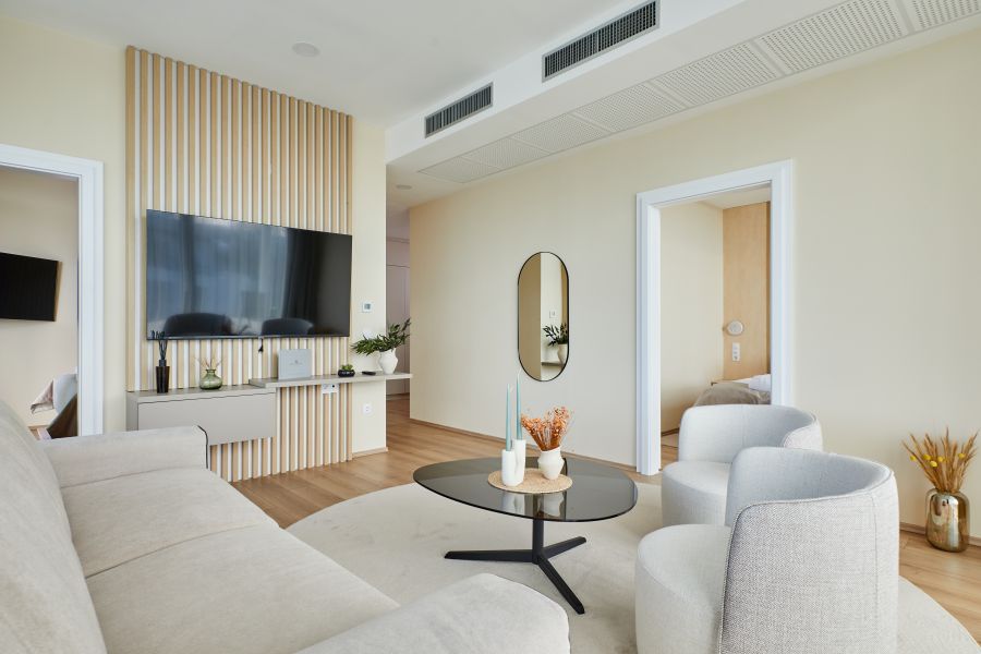 Apartmá s oddělenou ložnicí a prostorným obývacím pokojem je ideálním místem pro klidnou relaxaci a vyvážený odpočinek. Vytříbený pocit prostoru a pohodlí umocňuje bezplatná minerální voda a kávovar Nespresso. Cítíte se jako doma i při úplném odpoutání od každodenního života. Kompletní relaxaci podpoří chytrá televize s Netflixem a neomezená vysokorychlostní Wi-Fi. Apartmá lze na požádání vybavit přistýlkami, takže je ideální volbou i pro rodiny s dětmi.
